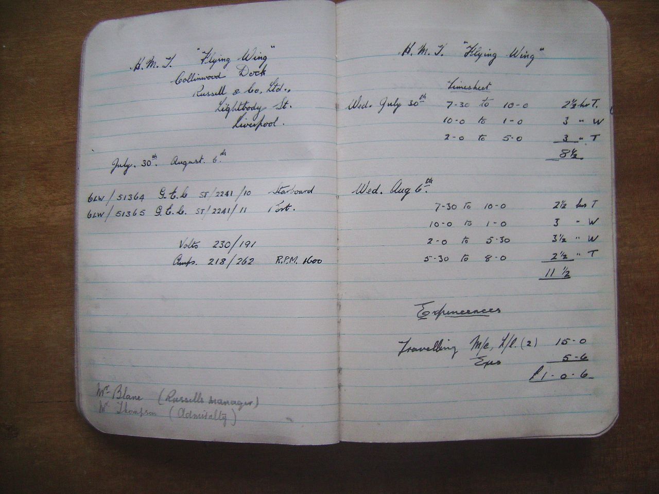 Wing", Collingwood Dock (or Nelson Dock - both written), Russell